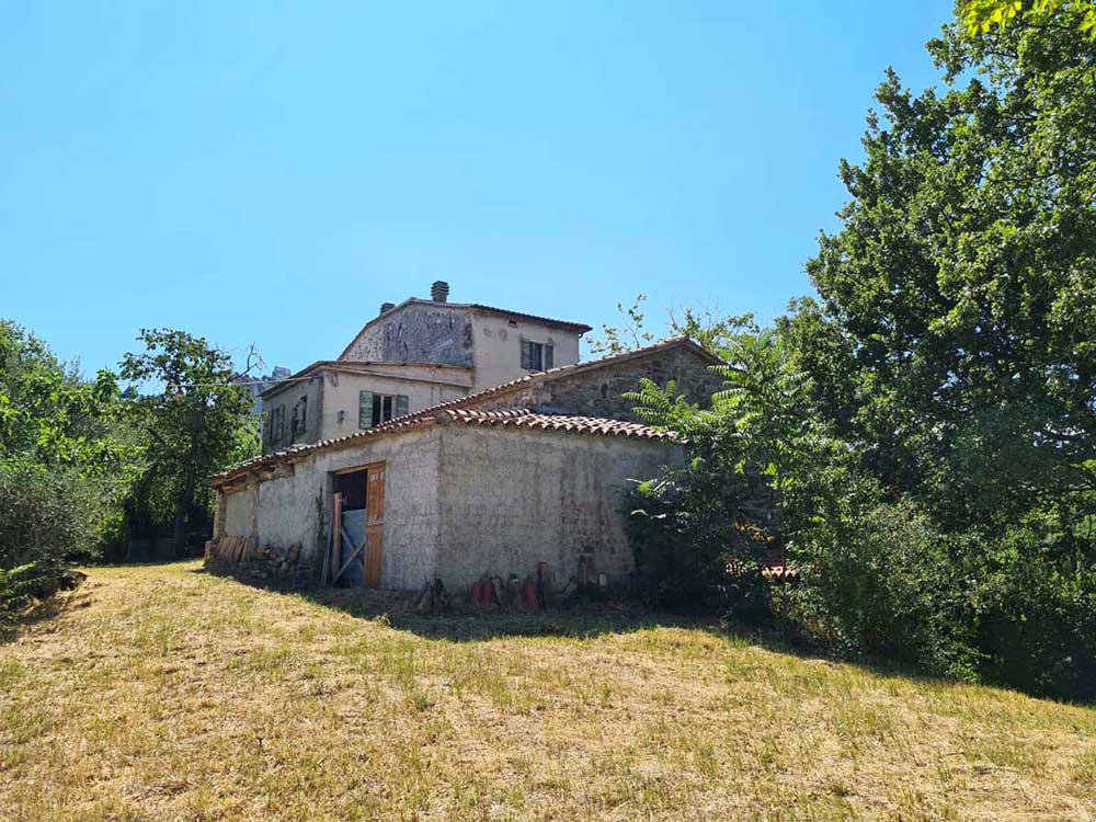 Il fabbricato principale, che ha una superficie di circa 200 metri quadrati, necessita di restauro per far risplendere la sua antica pietra locale. Affianco si trova un edificio di 80 metri quadrati, inizialmente concepito come accessorio agricolo ma che, come ben sapete, può essere trasformato in abitazione. Qui si vive ancora ascoltando il trepestio dei daini e dei lepri che attraversano il podere.