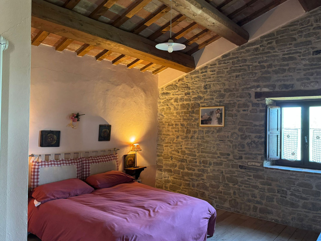Casale in pietra immerso nel Montefeltro, e più precisamente ad Apecchio cui dista circa 8 km. E’ una casa per chi ama stare via dalla pazza folla, dove ci si rifugia per vivere lontano dalla vita frenetica a cui tutti siamo sottoposti , respirando l’aria buona e godendo della vista delle colline e le montagne , in lontananza si scorge anche la Rocca di San Leo.