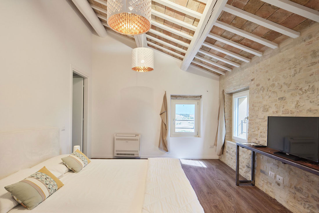Inmitten einer der schönsten Landschaften zwischen Ancona und Macerata, zwischen Cingoli und Filottrano, liegt dieses Anwesen auf einem Hügel mit 360°-Panoramablick. Hier findet man endlich den Ort, von dem man immer geträumt hat – eine Freiheit, die nicht nur gedanklich, sondern real ist, ohne störende visuelle Einschränkungen. Wir befinden uns schließlich in den Marken, einer dünn besiedelten Region, deren Bevölkerung sich hauptsächlich entlang der Küste konzentriert. Dadurch konnte die Landschaft über die Jahrhunderte unberührt und ohne menschliche Eingriffe erhalten bleiben.
