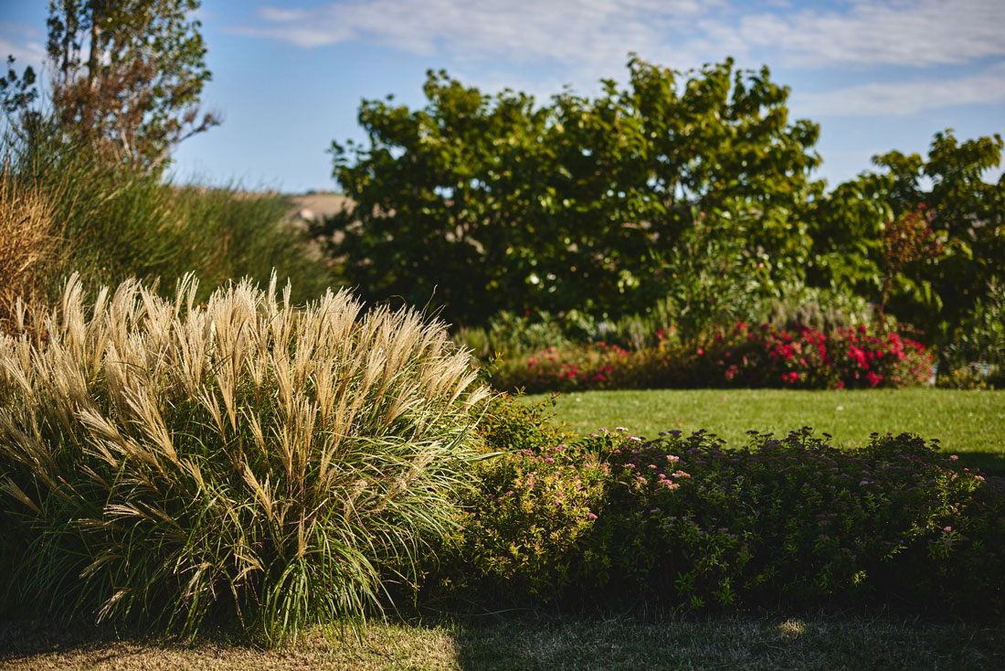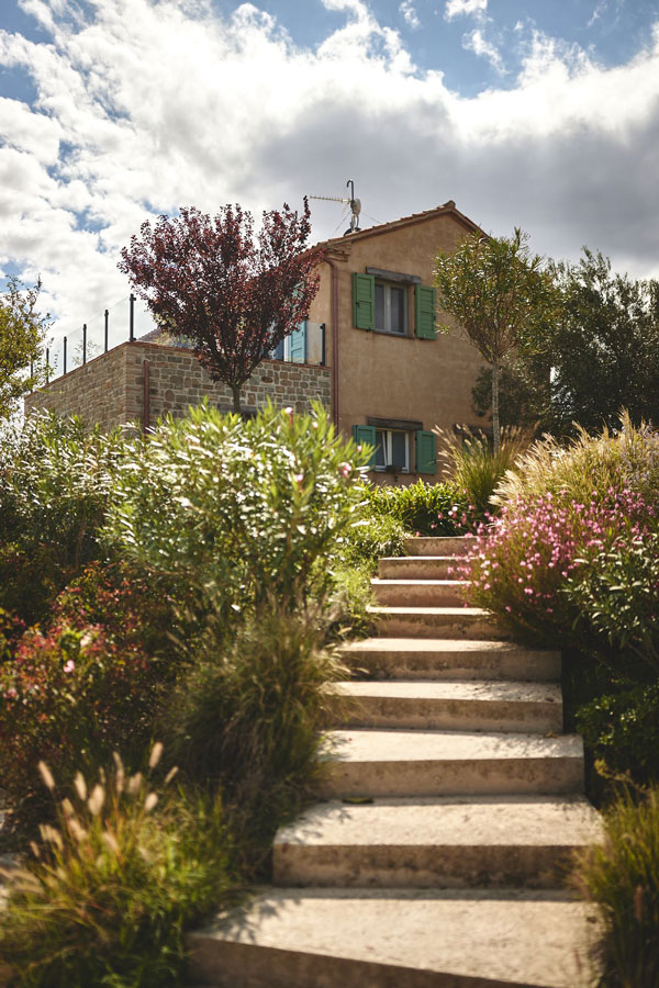 Drei Bauernhäuser, alle vollständig restauriert, sind von einem ein Hektar großen Garten umgeben. Zisternen sorgen für die Bewässerung und die Pflege der Pflanzen auch in den sonnigen Sommermonaten, da das Wasser kostenlos aus einem künstlichen See stammt, der weit vom Anwesen entfernt liegt.