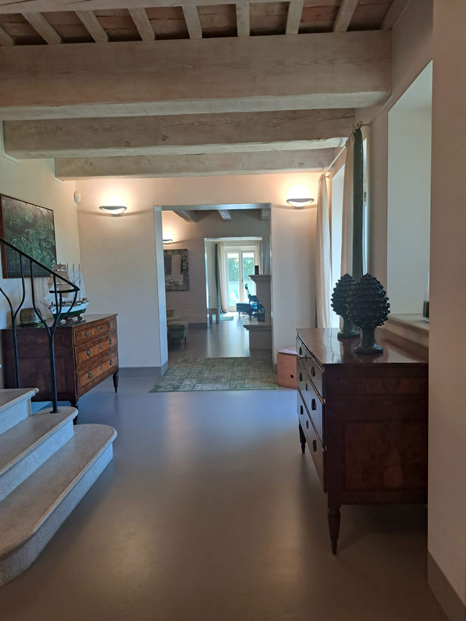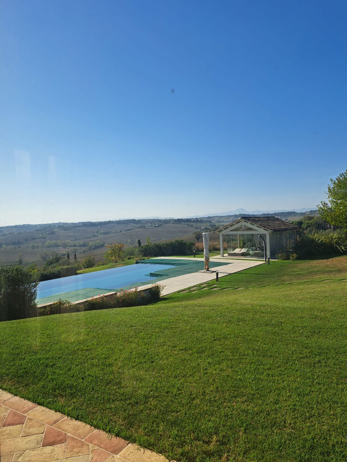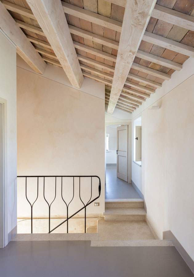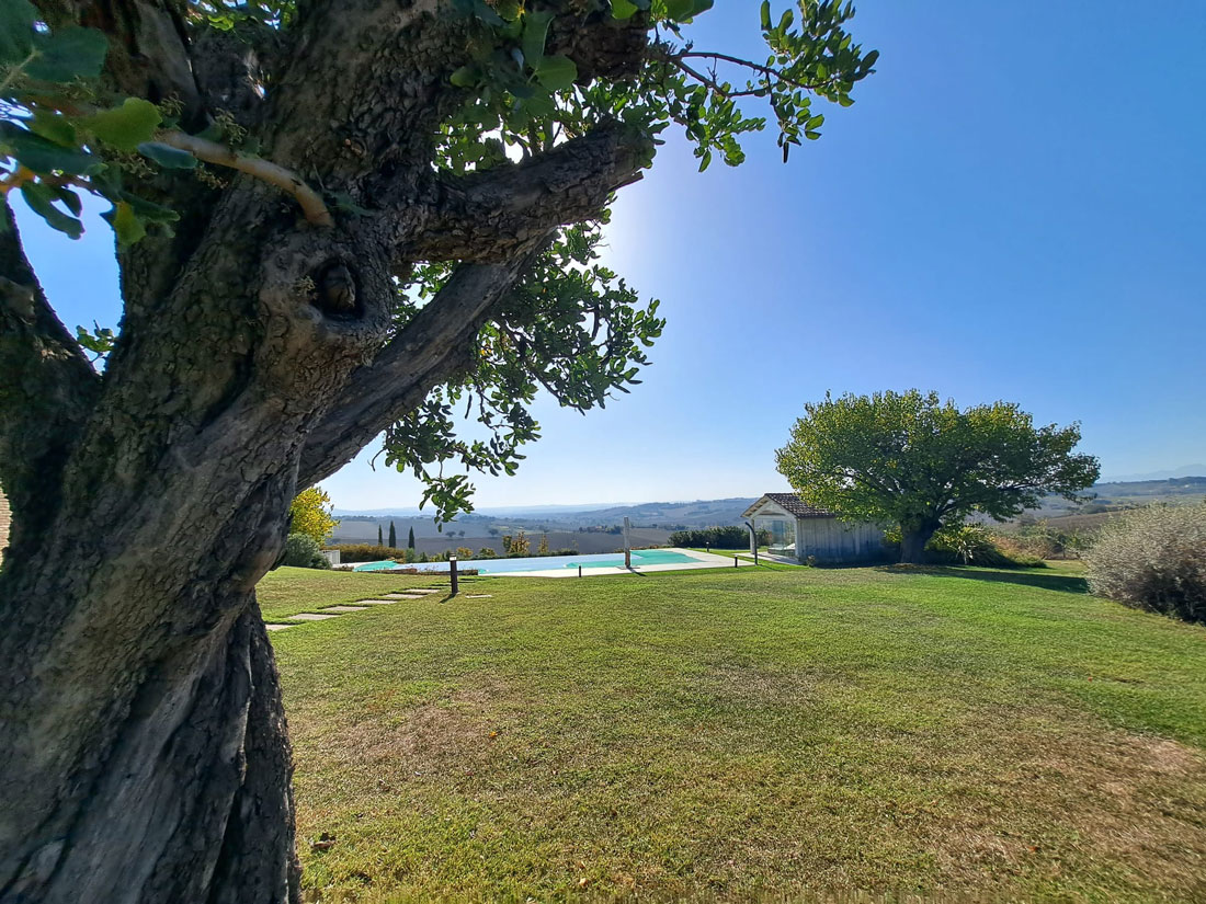 Some farmhouses seem to inscribe a modern signature in the renewed tradition of rural architecture. This is the case of this property, located on the crest of a hill with a wonderful view, just a few kilometres from the Adriatic Sea and the town of Senigallia, to which it belongs administratively and from which it is about 10 km away.
