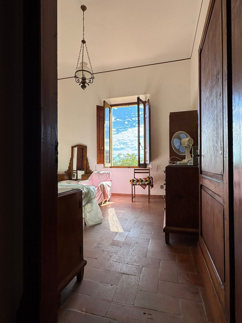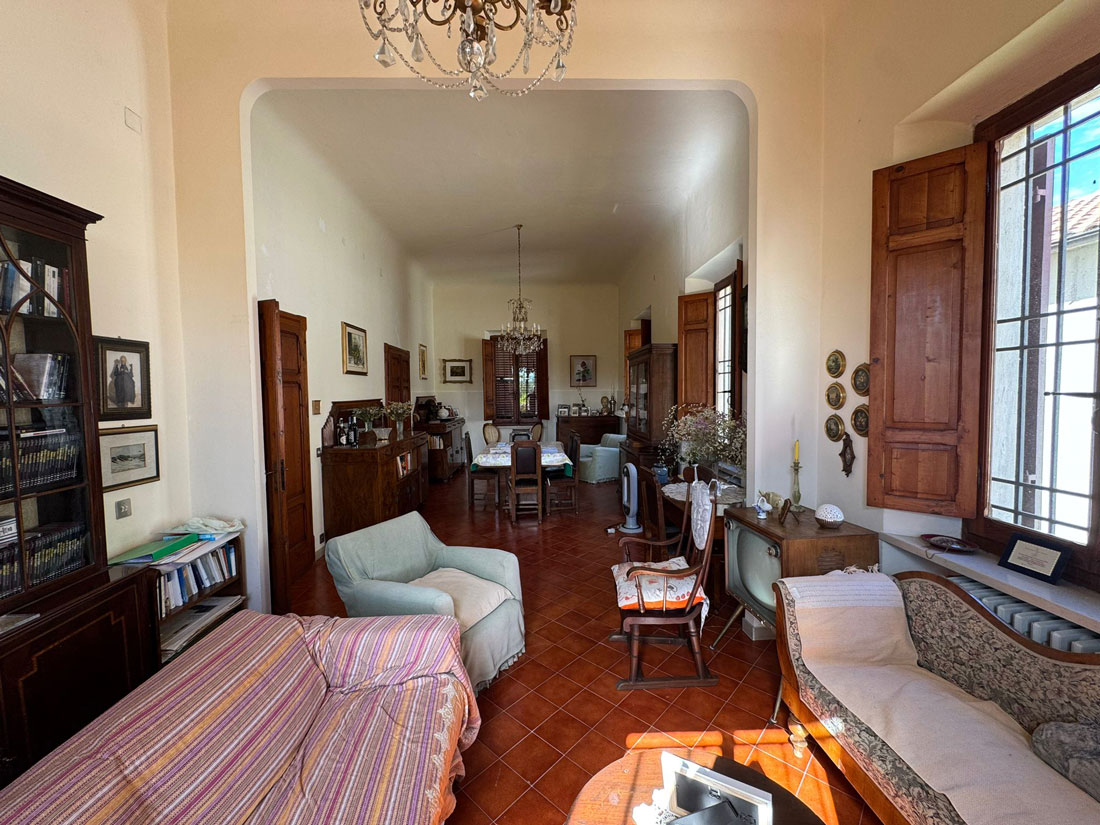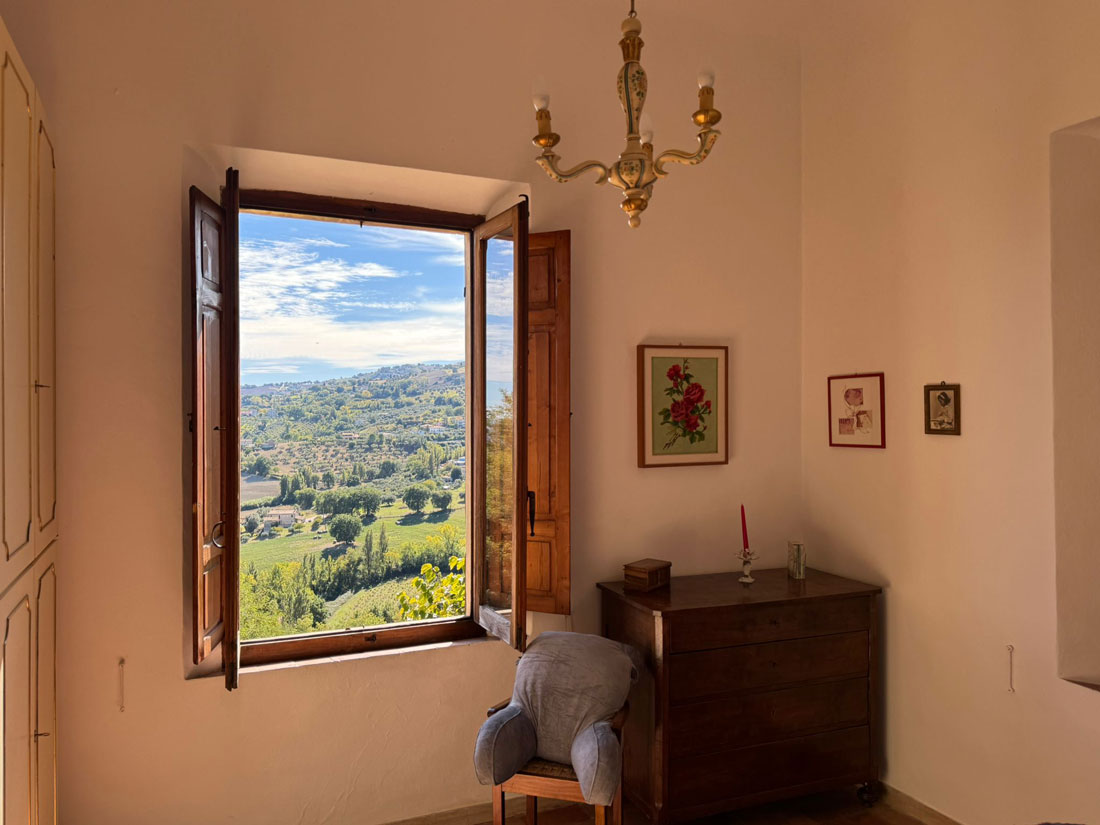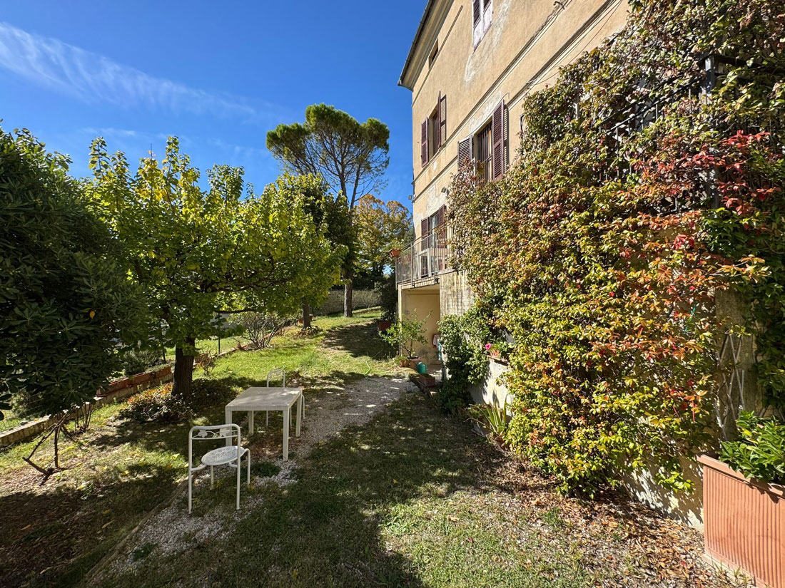 In Villa Strada di Cingoli, a very cosy hamlet on the way to the sea, a three floors Art Nouveau building with a fenced garden all around the house. Stunning panorama of the beautiful and green countryside.