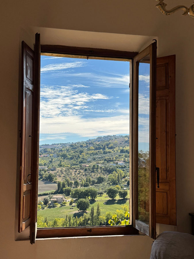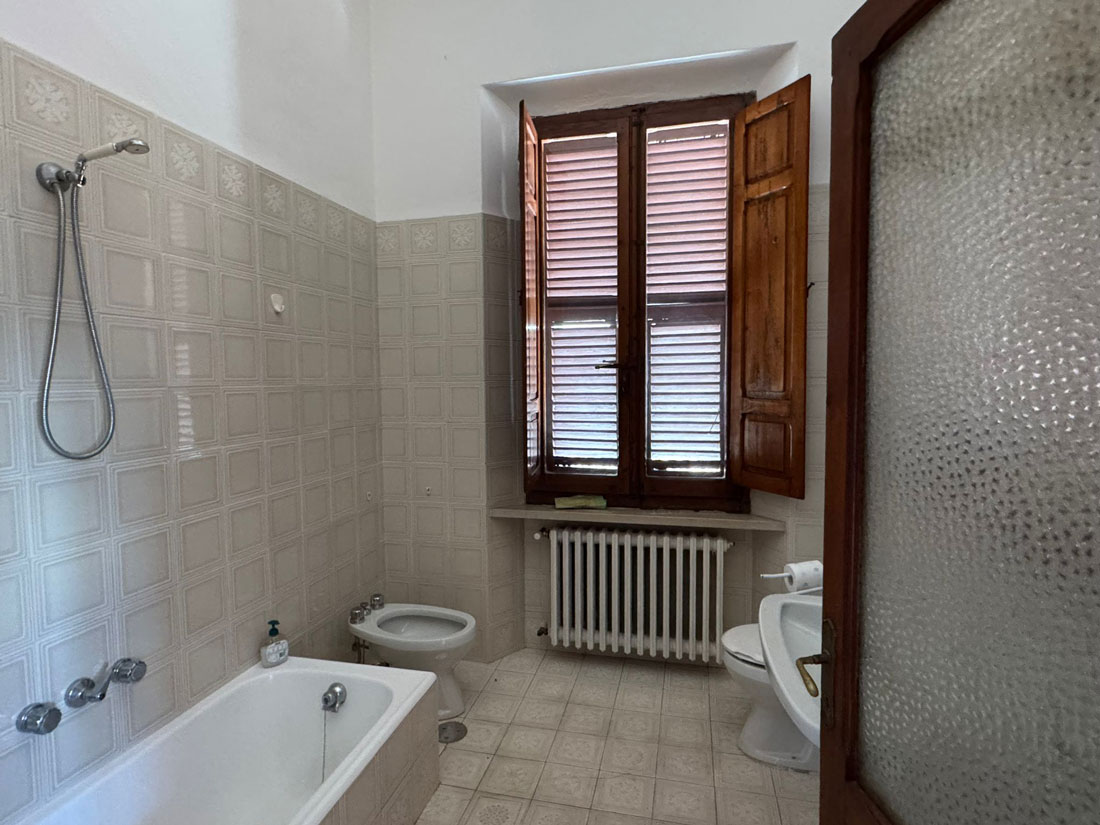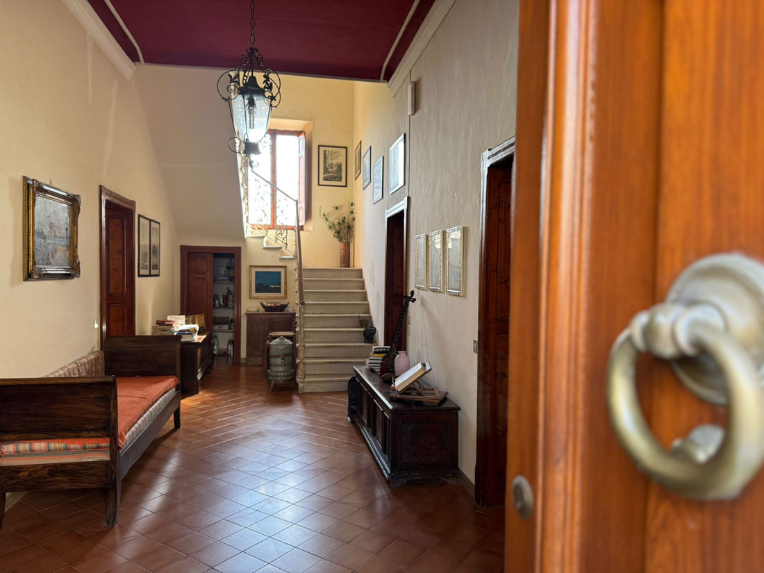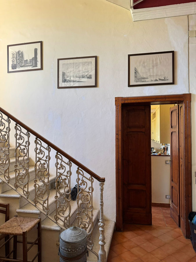In Villa Strada di Cingoli, a very cosy hamlet on the way to the sea, a three floors Art Nouveau building with a fenced garden all around the house. Stunning panorama of the beautiful and green countryside.