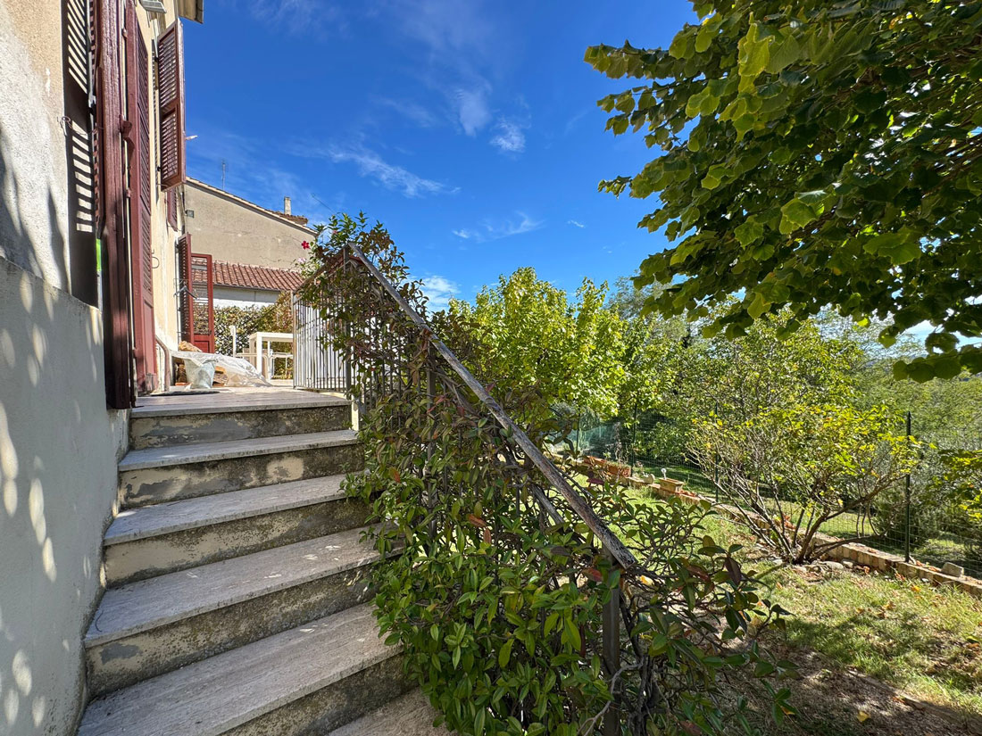 On the 110 sq m ground floor, a large hall with a view of the beautiful Art Nouveau style staircase with its iron banister and the decorative ceiling. To the left there is a large living room with french windows overlooking the terrace. On the right is an eat-in kitchen with a big fireplace, the kitchen also has french windows opening onto the terrace. Also on the ground floor there are one bedroom and one bathroom.